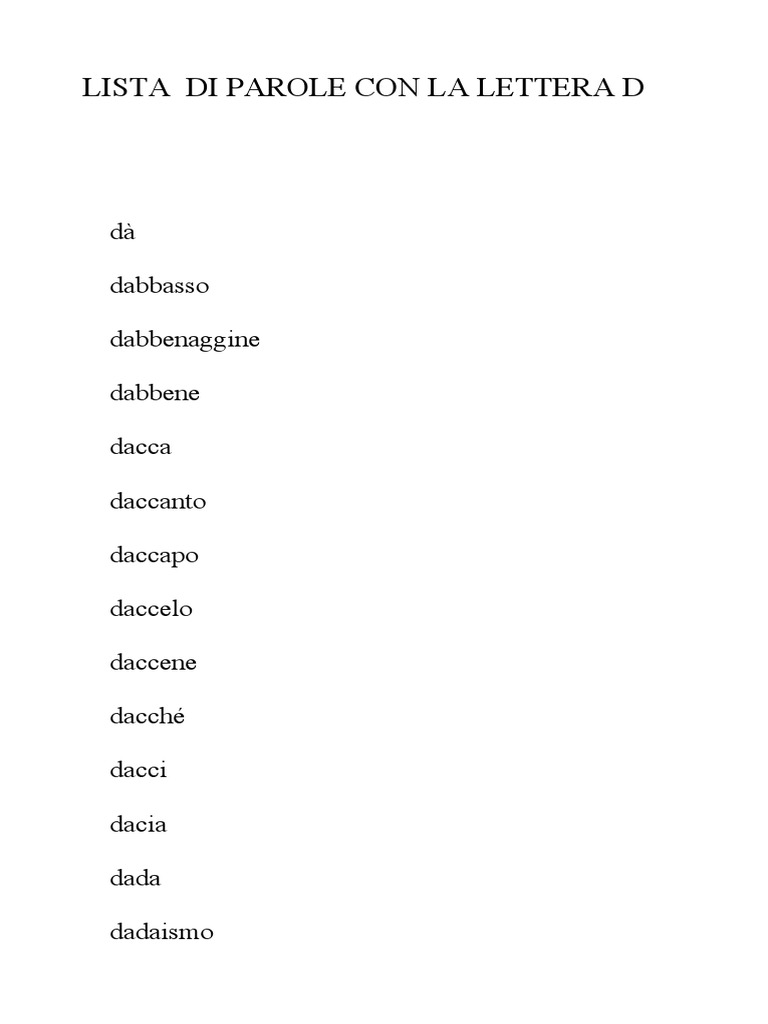 Parole con doppie consonanti: esempi - Nextews.com L e parole con doppie consonanti sono una delle più difficili dal punto di vista dell'ortografia. La cosa è che queste lettere non sono pronunciate come una coppia. Di regola, suona solo un suono. Da qui la complessità - l'incapacità di notare l'ortografia. › humanitarian › humanitarian-paroleParole Processing | USCIS Jun 23, 2022 · Processing Website Alert – Parole Processing Times. USCIS Humanitarian Affairs Branch (HAB) normally adjudicates parole requests within 90 days of receipt. If we need to ask you for additional information, it will take us longer to process your request. We are currently receiving an extremely high number of requests for parole. While we try ... Elenco di Parole Positive - Aggettivi Positivi - Parole Belle Elenco di parole positive dalla A alla Z per ogni lettera dell'alfabeto. Elenco di belle parole e tratti caratteriali positivi (aggettivi positivi) - Italian. L'elenco di parole positive di seguito rappresenta una buona risorsa per diversi progetti in cui vengono utilizzate le seguenti: emozioni positive, vocabolario positivo, pensiero positivo, come pensare positivo, sentimenti positivi ...