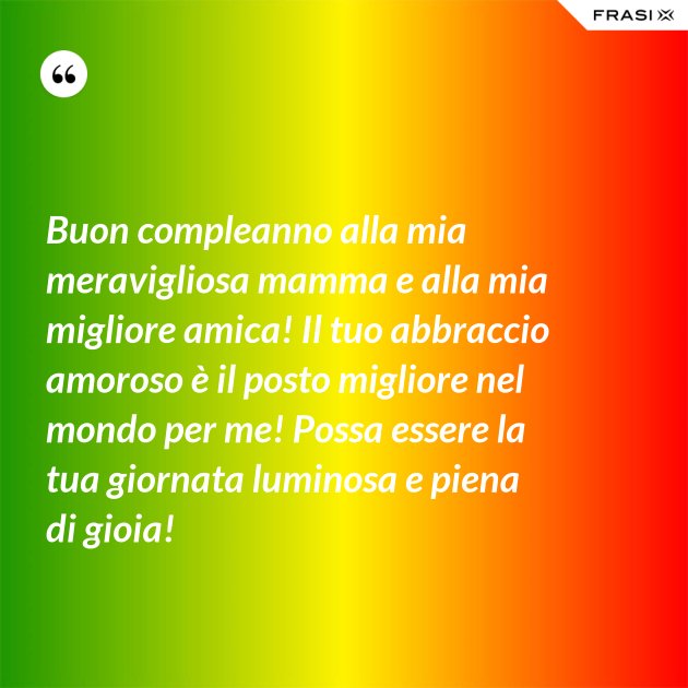Tantissimi auguri di buon compleanno amica mia! Buon compleanno amica del cuore! In una giornata così bella e calda, festeggio assieme alla mia migliore amica. Buon compleanno cara, che la vita ti regali tutto ciò che hai sempre desiderato. Sei rara come una pietra preziosa, insieme un fascio di gioia e di risate. In un giorno così amorevole, ti auguro tanto amore e felicità.