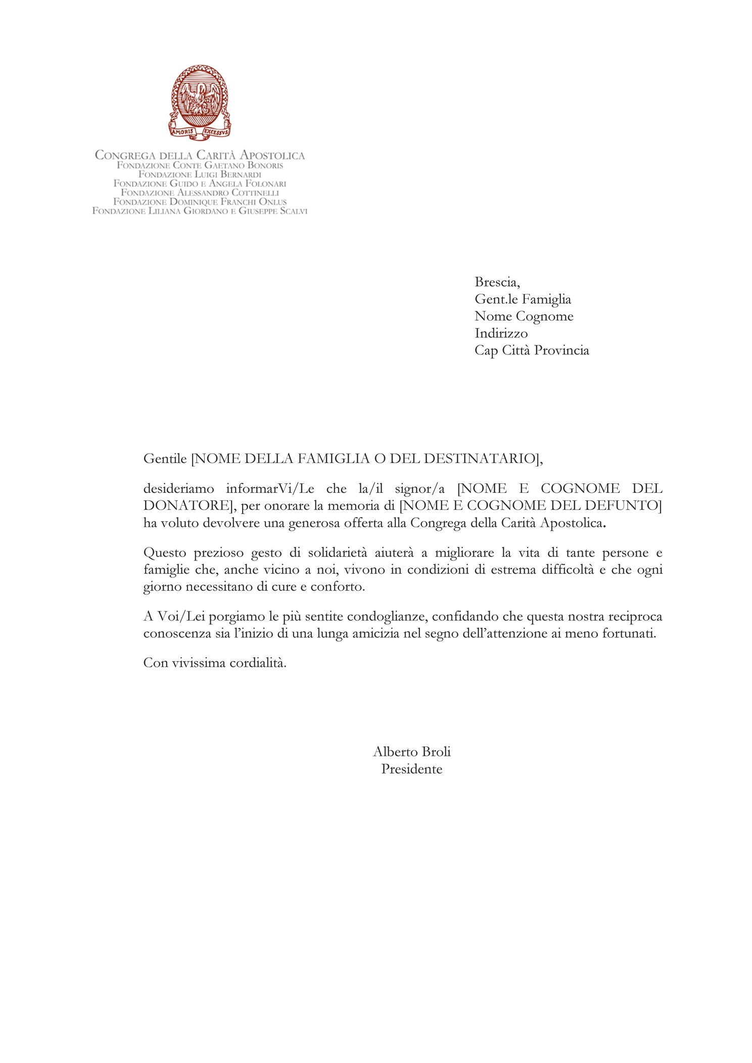 Fac simile lettera di richiesta donazione