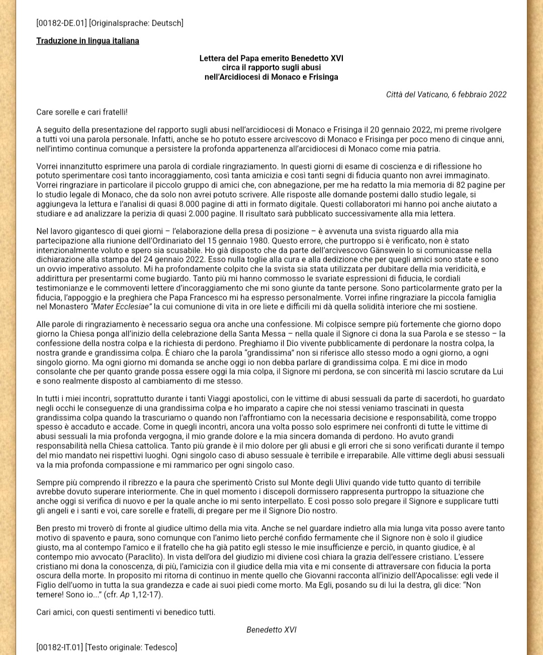 Sara Mauri on Twitter: "Lettera del Papa emerito Benedetto ...